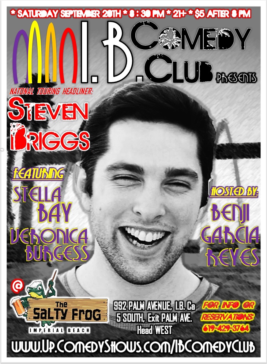 IB Comedy Club’s inaugural show, is proud to present National Touring Comic Steven Briggs. With you features Stella Bay & Veronica Burgess’ Plus host. IB’s own Benji GarciaReyes, plus Get here early to catch the winner from the Monday Night Funny Comedy Show: SD Comedy League 2014, Round 1, Week 1 Winners Johnny Herrera & Danielle Arce.