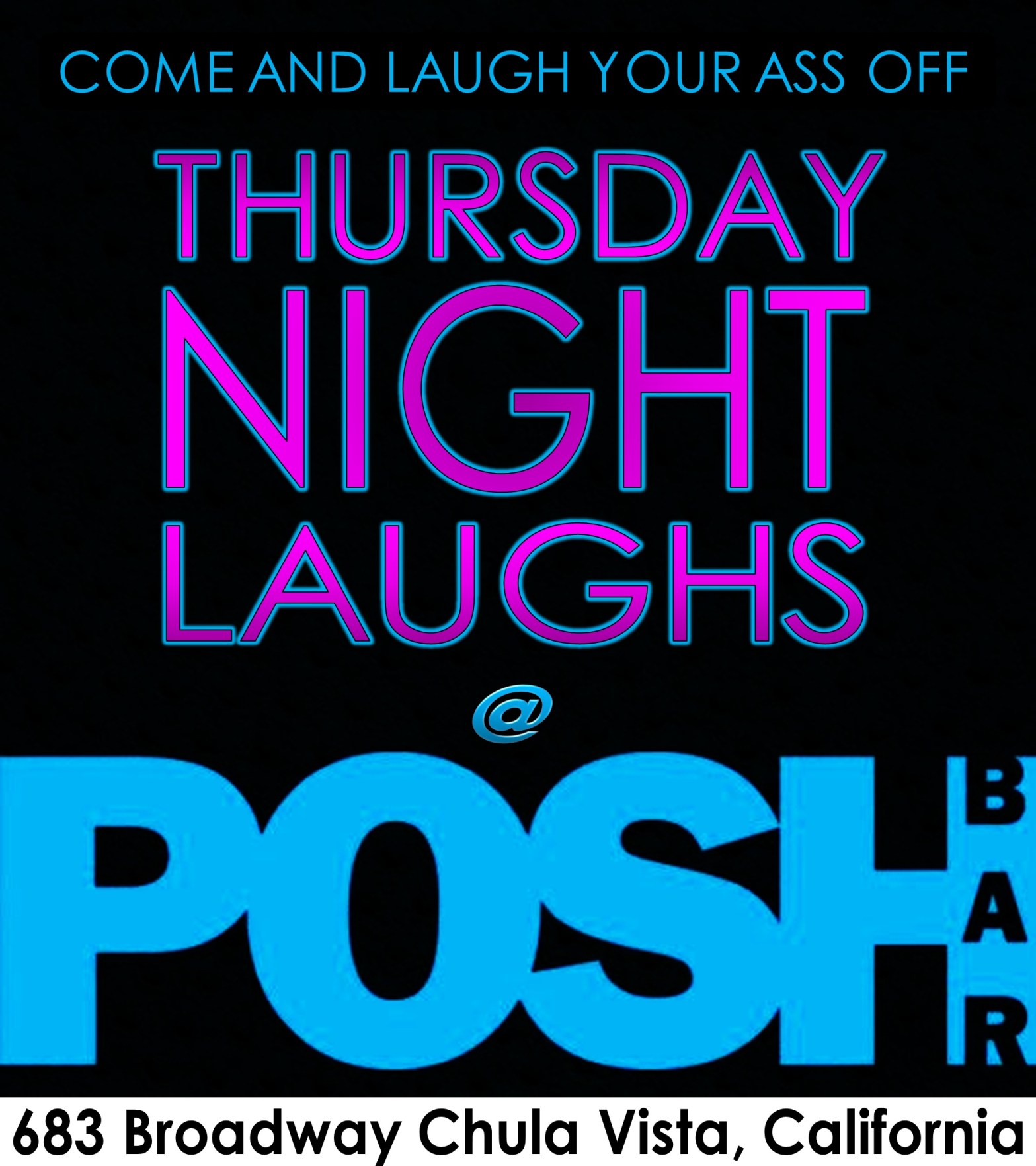 NEW WEEKLY SHOW! Up Comedy & POSH Bar are proud to present Thursday Night Laughs Posted bybengarciareyesMarch 6, 2015April 6, 2015Posted inUncategorized Share this: Click to share on X (Opens in new window) X Click to share on Facebook (Opens in new window) Facebook Like Loading... Published by bengarciareyes Www.Faceboner.com www.UpComedyshows.com SanDiegoComedyShows.com View more posts