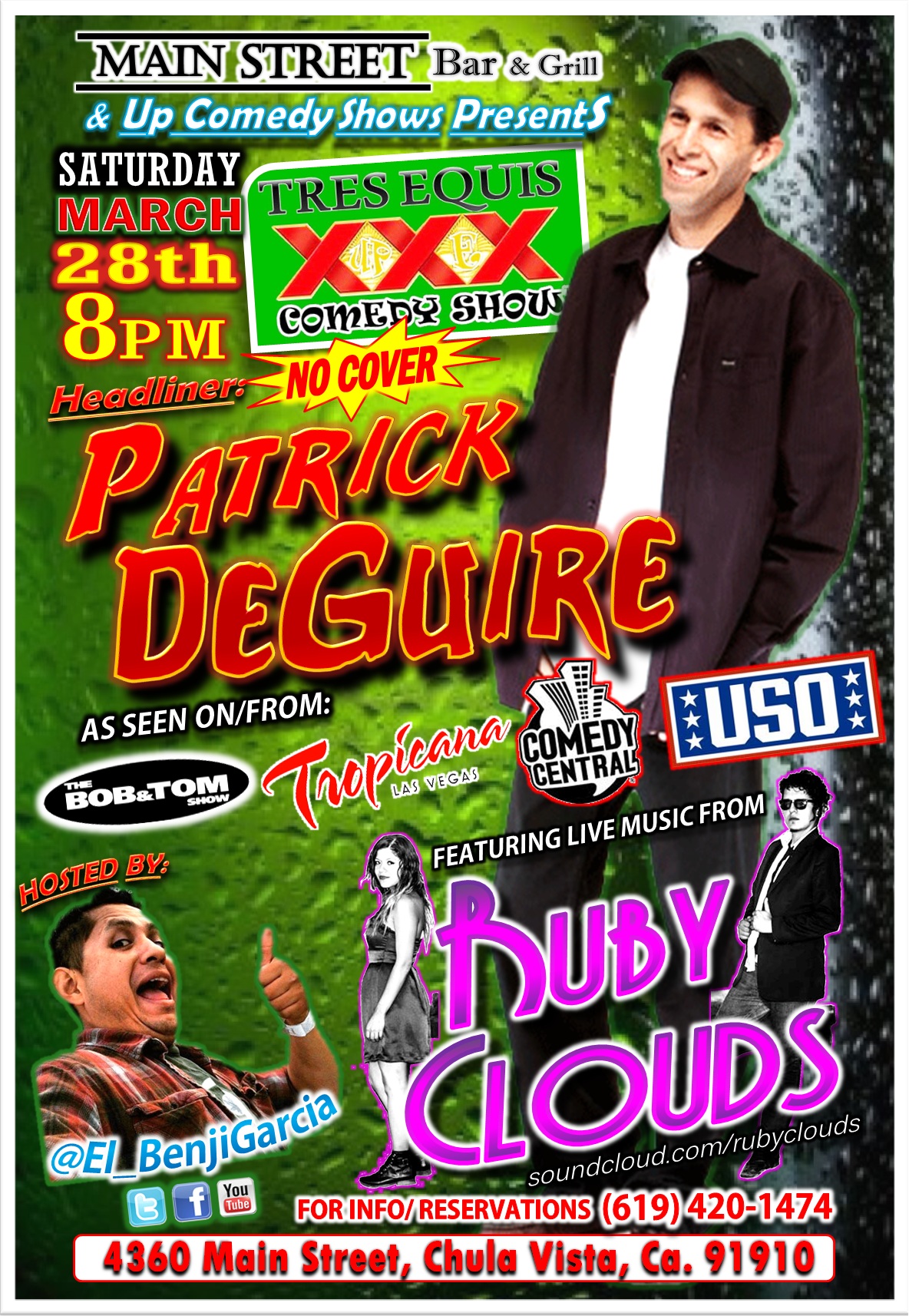MAIN STREET BAR & GRILL Presents Patrick DeGuire on 3/28, 8 pm Posted bybengarciareyesMarch 15, 2015April 6, 2015Posted inUncategorized Share this: Share on X (Opens in new window) X Share on Facebook (Opens in new window) Facebook Like Loading... Published by bengarciareyes Www.Faceboner.com www.UpComedyshows.com SanDiegoComedyShows.com View more posts