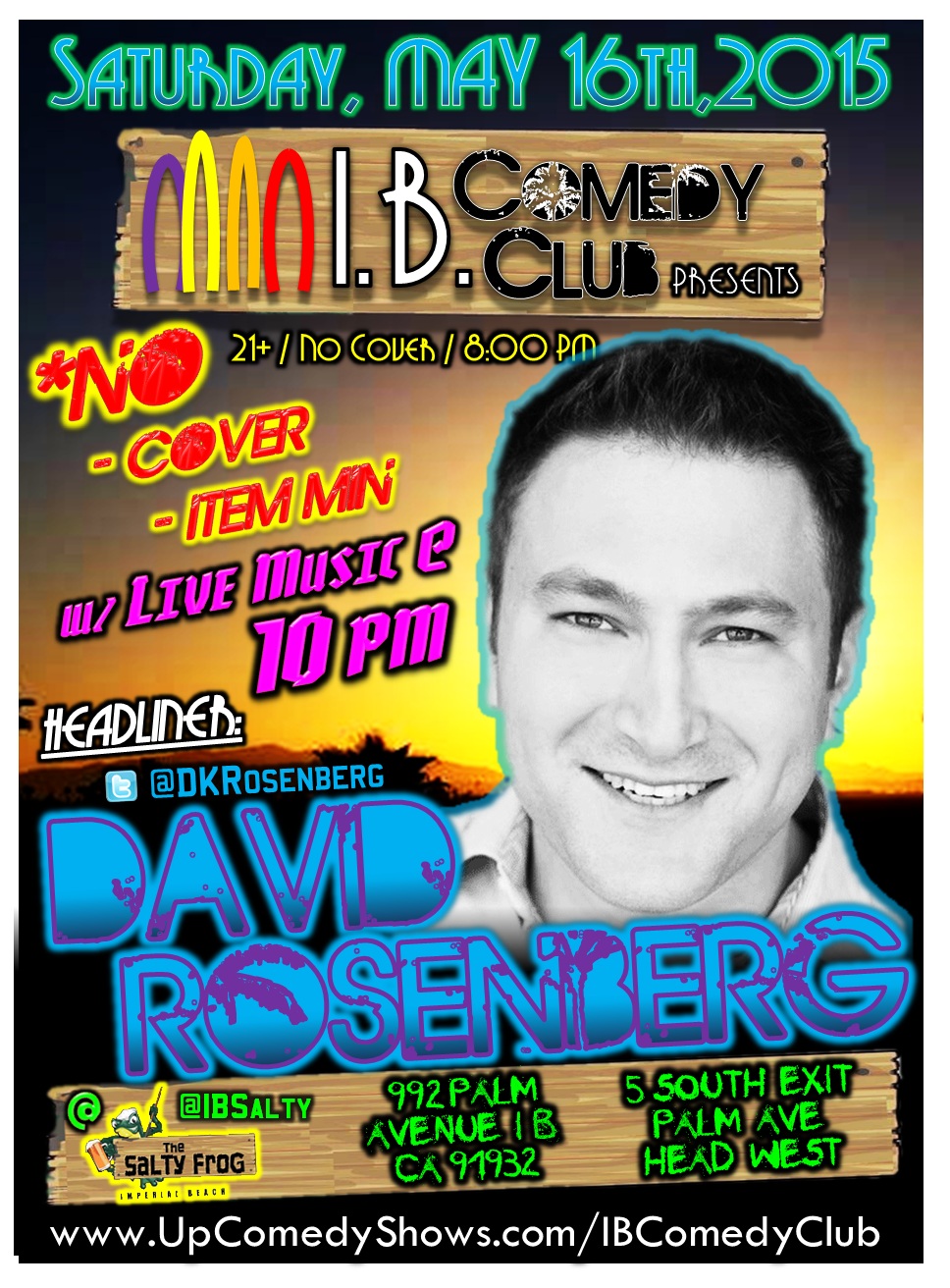 I.B.Comedy Club Presents David Rosenberg on Sat. May 16th, 8 pm Show, No Cover Posted bybengarciareyesMay 2, 2015September 10, 2015Posted inUncategorizedTags:David Rosenberg, I.B.Comedy Club, Imperial Beach, No Cover, The Salty Frog Share this: Share on X (Opens in new window) X Share on Facebook (Opens in new window) Facebook Like Loading... Published by bengarciareyes Www.Faceboner.com www.UpComedyshows.com SanDiegoComedyShows.com View more posts
