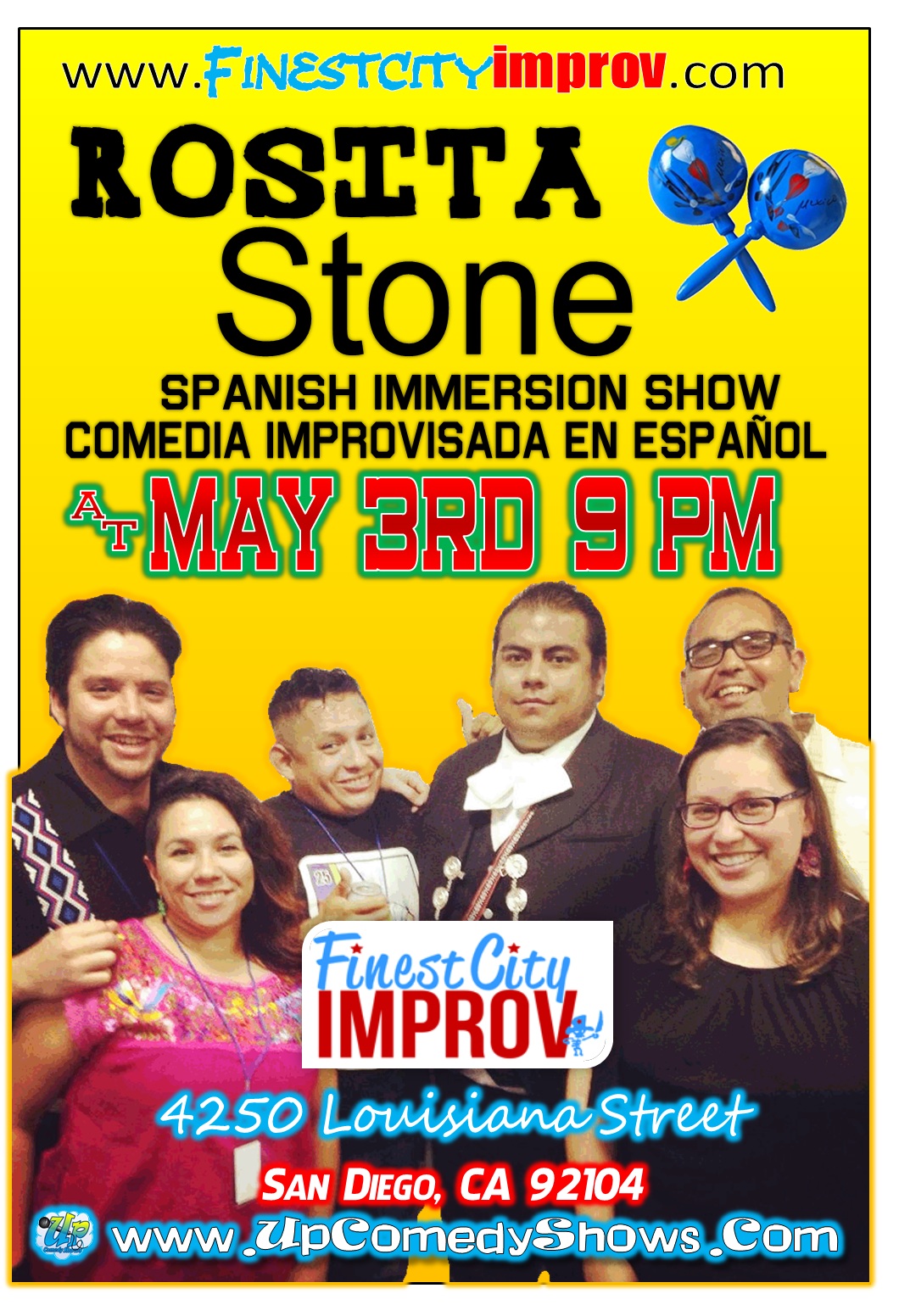 IMPROV SHOWS: Rosita Stone Spanish Improv returns to Finest City on Sun. May 3rd pm Posted bybengarciareyesMay 2, 2015September 10, 2015Posted inUncategorizedTags:18, Benji GarciaReyes, Dino SPezzini, Finest City Improv, Gaston Morineau, Jenn ABZ, Manny Baez, Rosita Stone, Spanish Improv, Veronica Burgess Share this: Click to share on X (Opens in new window) X Click to share on Facebook (Opens in new window) Facebook Like Loading... Published by bengarciareyes Www.Faceboner.com www.UpComedyshows.com SanDiegoComedyShows.com View more posts