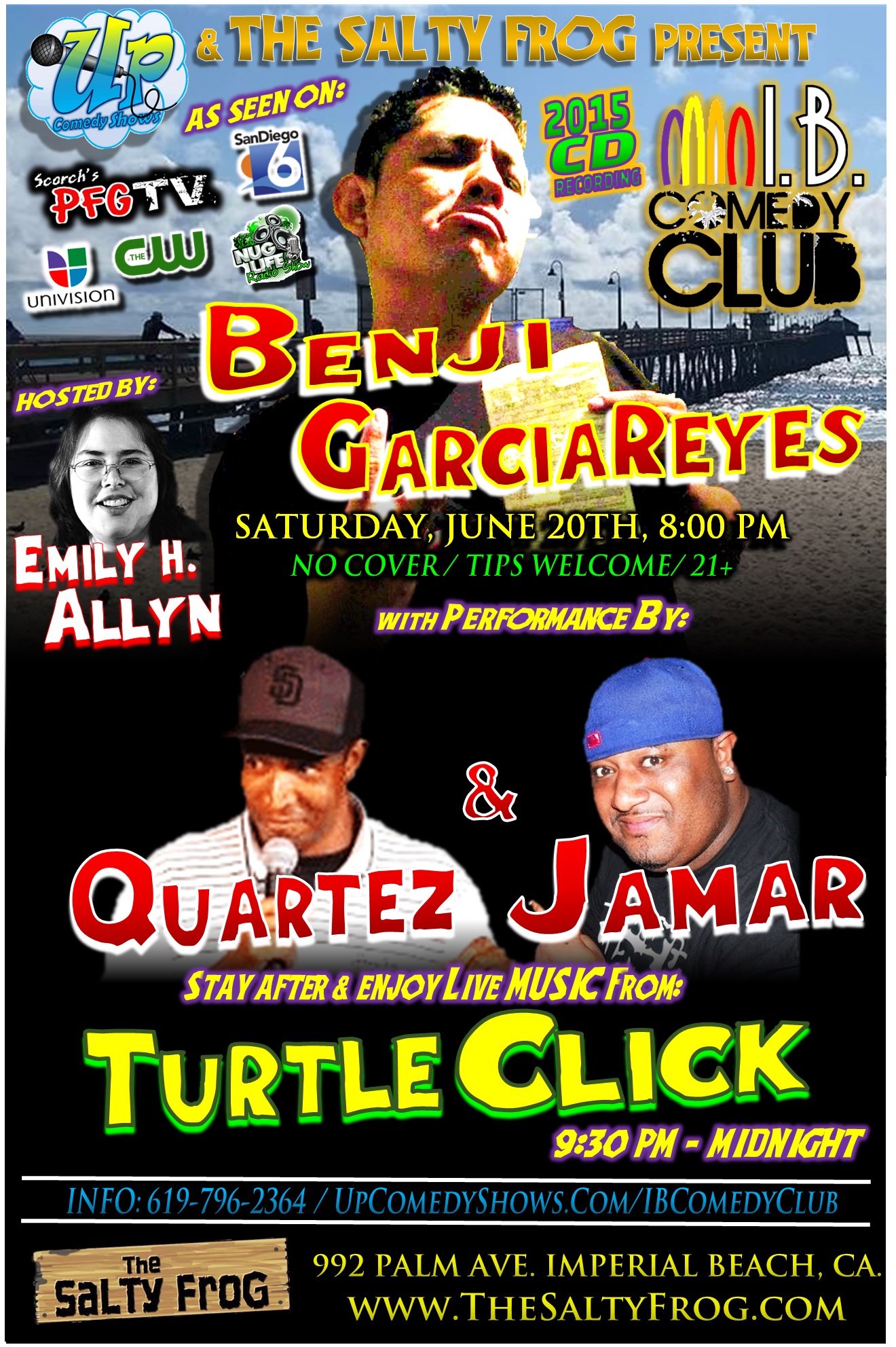 I.B. Comedy Club Presents: Benji GarciaReyes, Sat. June 20th, 8 PM Posted bybengarciareyesJune 5, 2015September 10, 2015Posted inUncategorizedTags:21+, Benji GarciaReyes, IB Comedy Club, Imperial Beach, No Cover ALTERNATE SHOW POSTER: Share this: Click to share on X (Opens in new window) X Click to share on Facebook (Opens in new window) Facebook Like Loading... Published by bengarciareyes Www.Faceboner.com www.UpComedyshows.com SanDiegoComedyShows.com View more posts