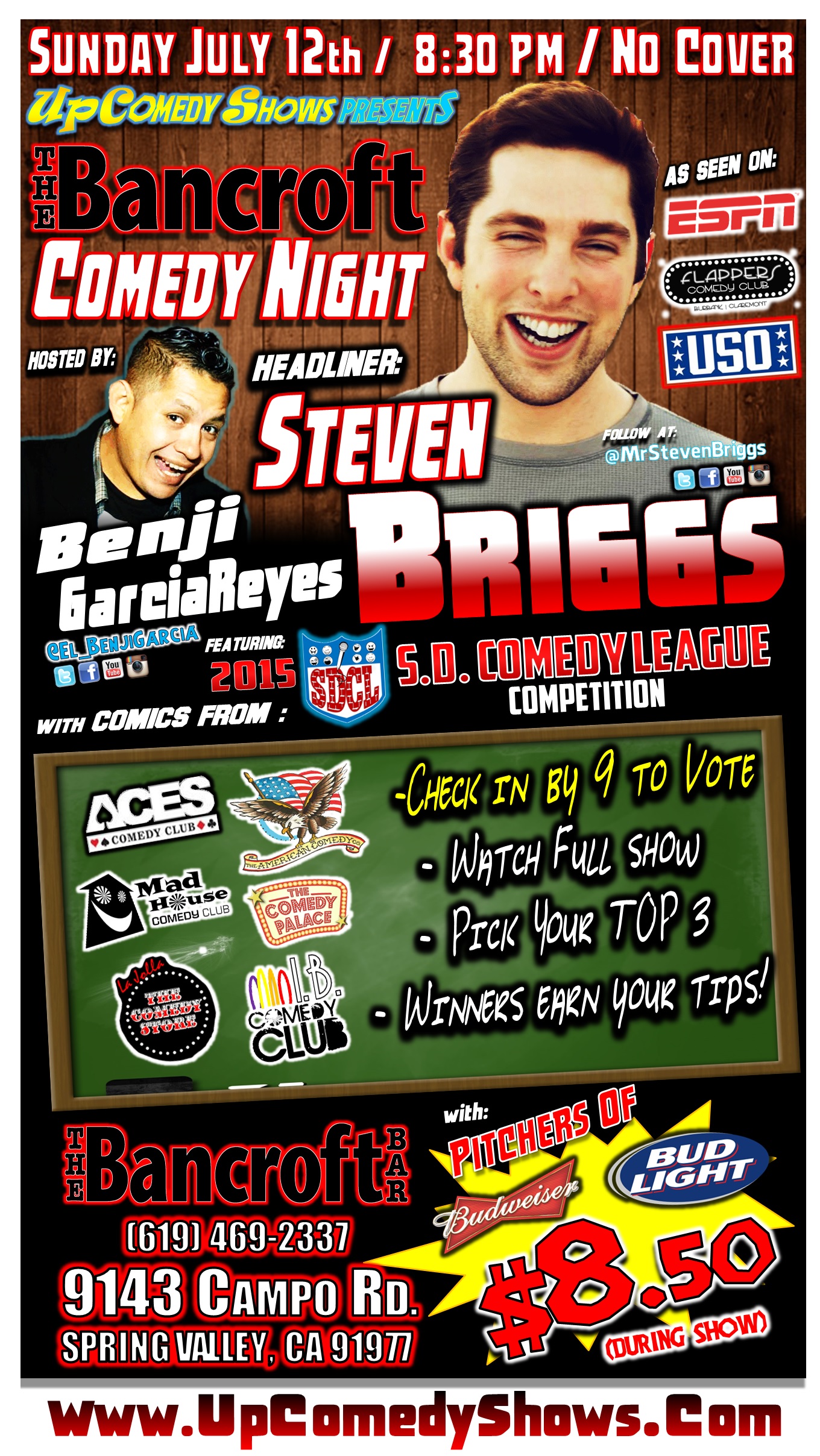 SD Comedy League : EAST, R1: W2 with STEVEN BRIGGS, Sun. July 12th, 8:30 PM Posted bybengarciareyesJuly 9, 2015September 10, 2015Posted inUncategorizedTags:Benji GarciaReyes, Comedy Contest, San Diego Comedy League, Spring Valley, Steven Briggs, The Bancroft Bar Share this: Click to share on X (Opens in new window) X Click to share on Facebook (Opens in new window) Facebook Like Loading... Published by bengarciareyes Www.Faceboner.com www.UpComedyshows.com SanDiegoComedyShows.com View more posts