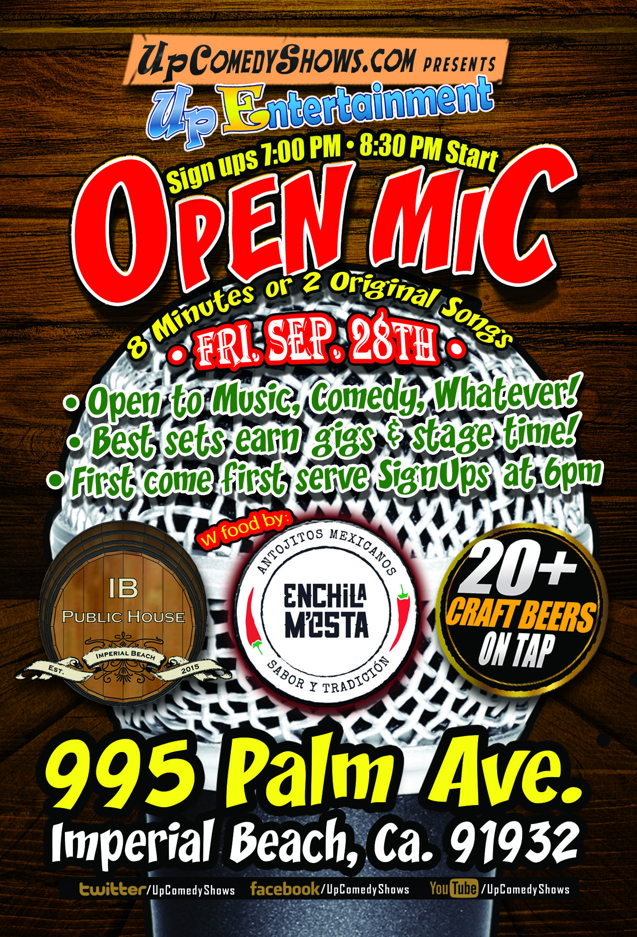 • Email UpComedyShows@Gmail.com to reserve a spot and coordinate if you are a musician, band or other types of communication needed with audio techs.