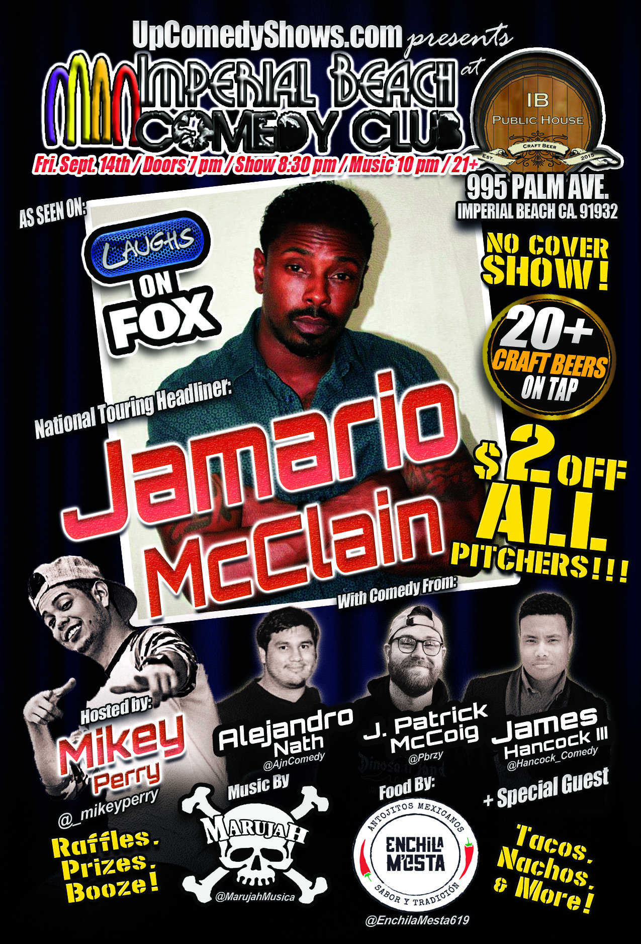 On Friday night, September 14th, the IB Comedy Club at the IB Public House hosts more awesome Live entertainment with Live comedy from JaMario McClain and music from @MarujahMusica!