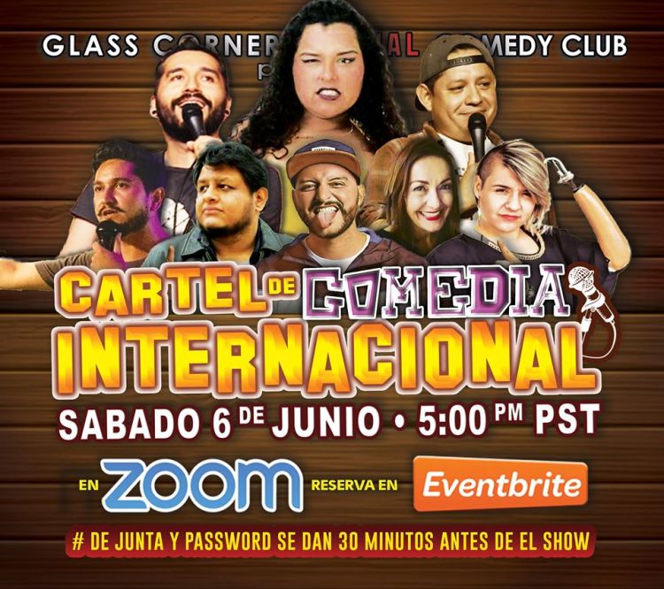 El Sábado 6 de Junio, 5 pm, acompañenos para más Comedia virtual “TRES EQUIS En Español presenta “El Cartel de Comedia Internacional”, con nuevos comediantes y más risas! Todo en VIVO Via ZOOM!