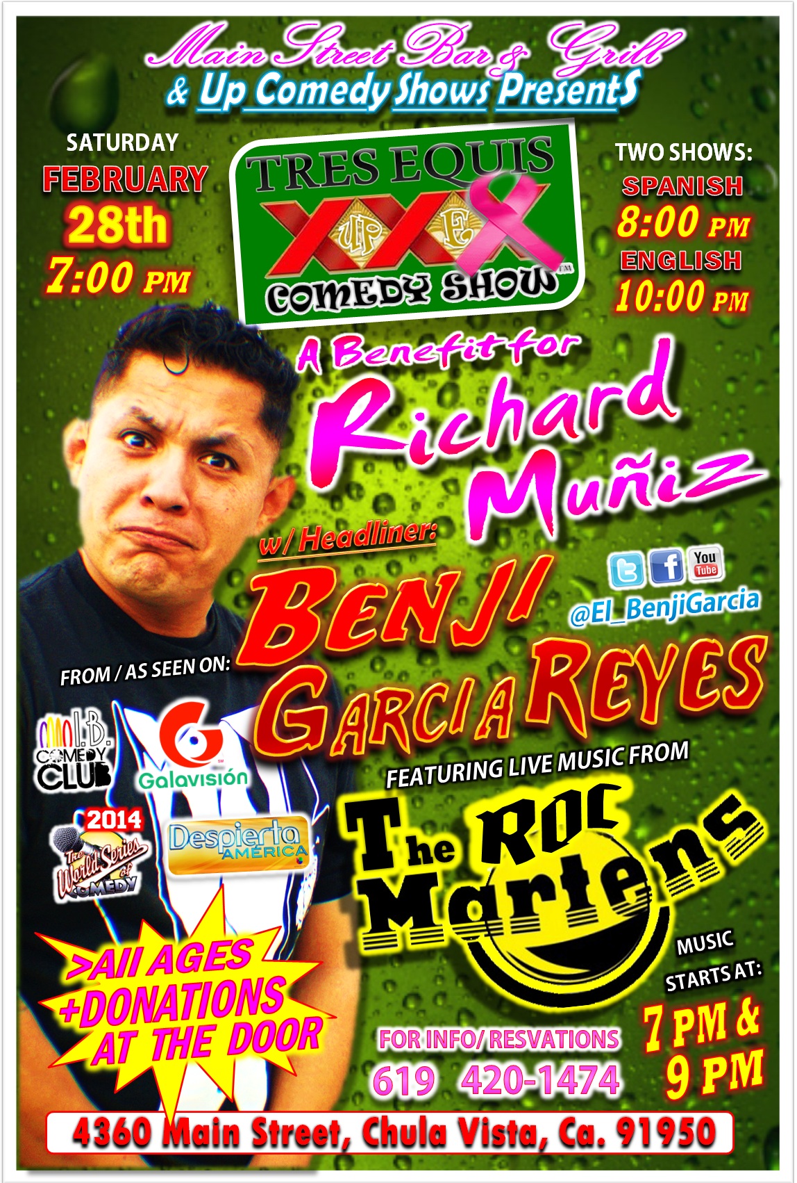UP COMEDY FUNDRAISERS: Tres Equis Comedy: Cancer Benefit in Chula Vista, 2/28, 7 pm