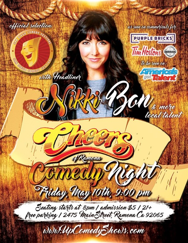 Friday, June 22nd, your Cheers of Ramona and Up Comedy Shows present Comedy Night!