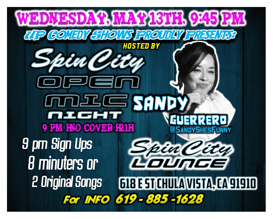 Spin City Comedy Presents: Open Mic Night w/ Sandy Guerrero! 4/8, No Cover, Sign ups 9:30 pm